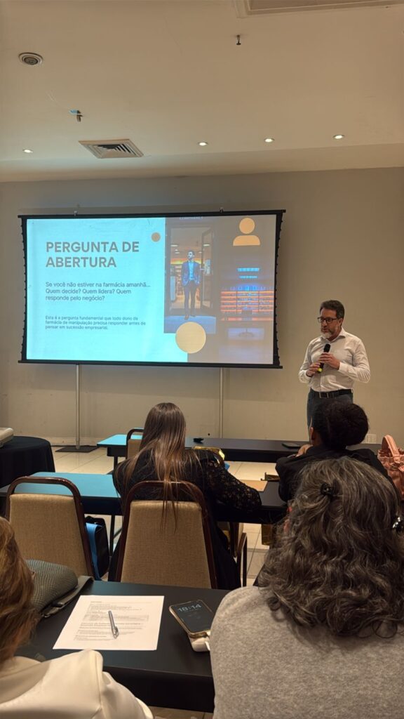 Durante o seminário, ficou claro que a sucessão em farmácia magistral exige planejamento antecipado. Também requer organização de processos e alinhamento entre sócios.